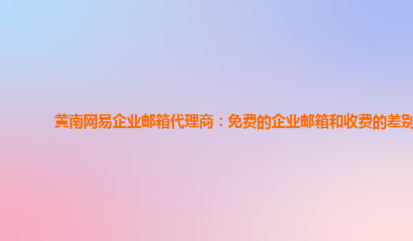 2024-03-14黄南网易企业邮箱代理商:免费的企业邮箱和收费的差别 免费企业邮箱VS收费企业邮箱 网易企业邮箱提供两种企业邮箱服务,免费版和收费版,它们之间的一些重要区别如下: 免费企业邮箱: 邮箱域名为“@163.com...