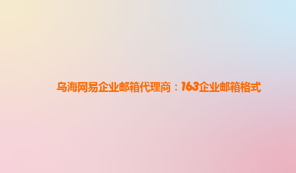 2024-03-14阿拉善盟网易企业邮箱代理商:网易163邮箱格式 作为一名阿拉善盟的网易企业邮箱代理商,我深刻体会到网易企业邮箱的优势和价值。其中最明显的一个特点就是网易163邮箱格式。 网易163邮箱格式的优势 网易163邮箱格...