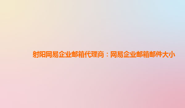 2024-03-14射阳网易企业邮箱代理商:网易企业邮箱邮件大小 网易企业邮箱是一款适用于企业用户的电子邮件服务,目前已经广泛应用于各行各业,成为了企业邮件管理的不二选择之一。而网易企业邮箱代理商则作为企业用户与网易企业...