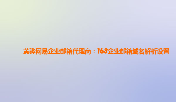 黄骅网易企业邮箱代理商:163企业邮箱域名解析设置 网易企业邮箱是一款专为企业用户打造的高效、稳定的企业邮箱服务,拥有众多优势和特点。 优势一:稳定可靠 网易企业邮箱采用云计算技术,拥有高度稳定性和可靠性...