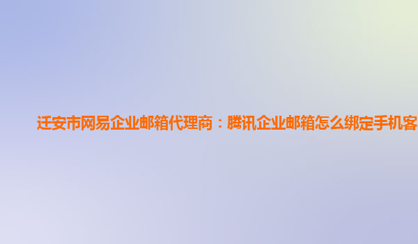 2024-03-14迁安市网易企业邮箱代理商:腾讯企业邮箱怎么绑定手机客户端 腾讯企业邮箱是目前非常流行的企业邮箱服务之一,在使用过程中,很多用户都会遇到如何绑定手机客户端的问题。下面我们就以迁安市网易企业邮箱代理商的身...