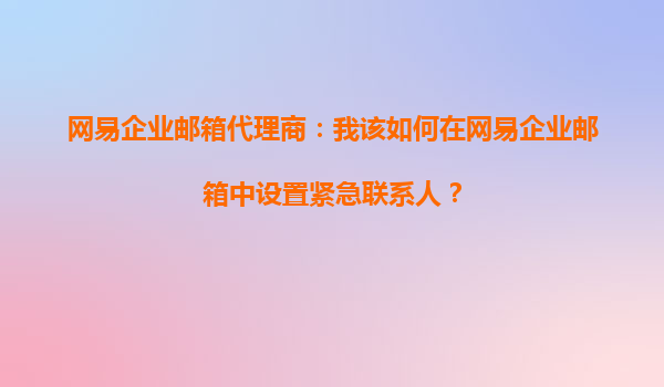 2025-09-21网易企业邮箱代理商指南:如何高效设置紧急联系人 作为企业管理的重要组成部分,企业邮箱的安全性与应急响应能力至关重要。网易企业邮箱凭借其稳定性和丰富的管理功能成为众多企业的首选,而通过网易企业邮...