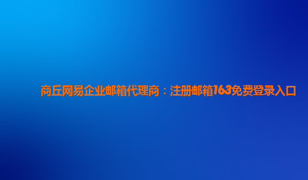 商丘网易企业邮箱代理商:注册邮箱163免费登录入口 网易企业邮箱是一个专为企业用户打造的电子邮件服务平台,可以帮助企业实现更加高效便捷的邮件沟通和管理。作为商丘地区的网易企业邮箱代理商,我们提供...