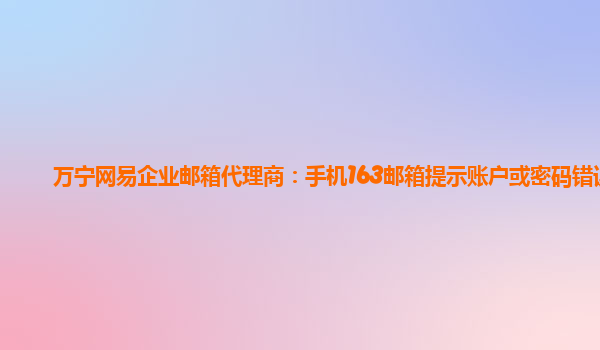 2024-03-14万宁网易企业邮箱代理商:手机163邮箱提示账户或密码错误 随着互联网的发展,电子邮件已经成为人们日常工作和生活中不可或缺的一部分。作为国内知名的企业邮箱品牌之一,网易企业邮箱以其稳定的服务质量和丰富的功...
