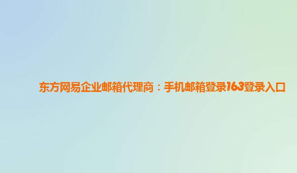 2024-03-14东方网易企业邮箱代理商:手机邮箱登录163登录入口 作为东方网易企业邮箱的代理商,我们为企业提供了一站式的邮箱服务。在移动互联网时代,手机邮箱已经成为企业日常办公不可或缺的工具之一。下面我们就来介绍一...