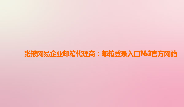 金昌网易企业邮箱代理商:邮箱登录入口163官网 网易企业邮箱是国内知名的企业邮箱服务提供商,为企业提供稳定、高效、安全的邮箱服务。作为金昌地区的网易企业邮箱代理商,我们为您提供方便快捷的服务,让您享受到...