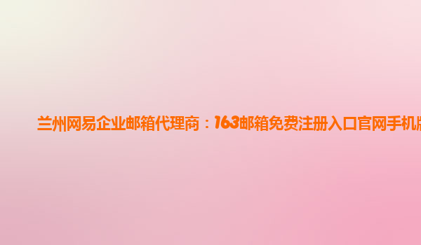 2024-03-14兰州网易企业邮箱代理商:163邮箱免费注册入口官网手机版 网易企业邮箱的优势 网易企业邮箱是一款专为企业用户量身定制的邮件服务,拥有许多优势和特点,让您的工作更加高效便捷。 安全稳定 网易...