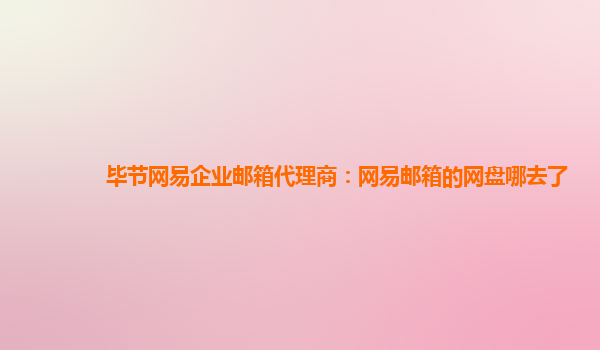 2024-03-14毕节网易企业邮箱代理商:网易邮箱的网盘哪去了 近日,许多网易企业邮箱用户纷纷发现,原本在邮箱中便捷使用的网盘功能不见了。这一变化引起了用户的疑惑和不满。 作为毕节网易企业邮箱代理商,我们希望能够...