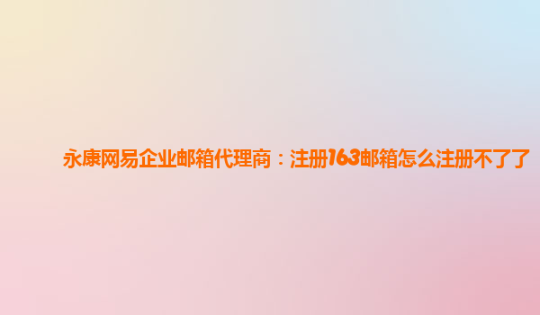 2024-03-14德清网易企业邮箱代理商:163邮箱注册为什么注册不了 最近有很多人反映在注册网易企业邮箱时遇到了一些问题,无法完成注册。下面,我们从几个方面来分析一下可能的原因。 1.邮箱域名没有备案 网易企业邮箱需要使用...