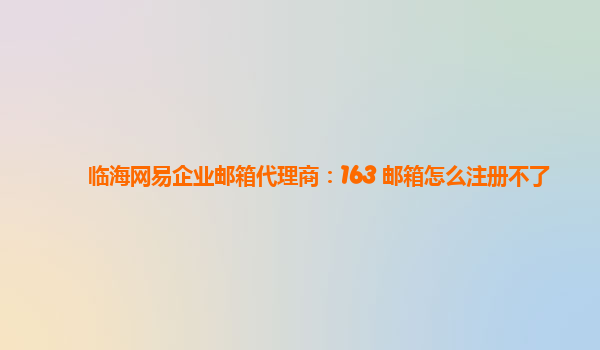 海盐网易企业邮箱代理商:163邮箱为啥注册不了 很多人在使用网易企业邮箱时会遇到163邮箱无法注册的情况,那这是为什么呢?其实原因很简单,因为网易企业邮箱和网易个人邮箱是两个完全不同的系统,所以注册的方式也...