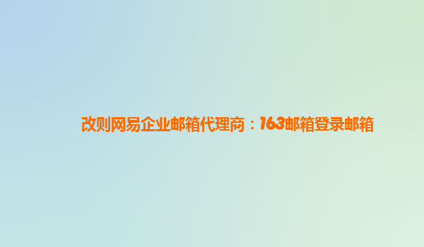 2024-03-08日土网易企业邮箱代理商:163邮箱登录入口163邮箱登录 作为一家网易企业邮箱的代理商,我们为您提供最专业的企业邮箱服务,包括邮箱定制、维护、培训等方面。在我们的服务下,您可以轻松拥有一款适合自己企业的高效...