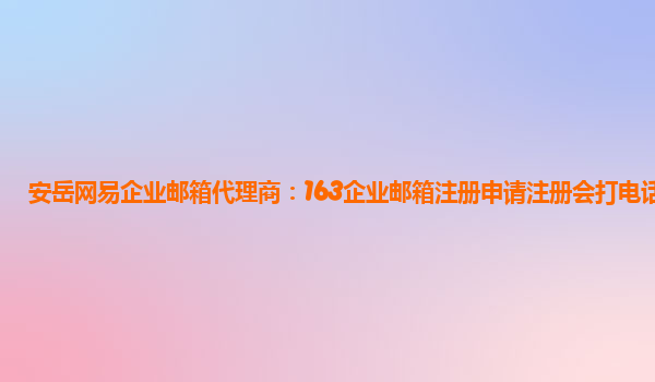 2024-03-08安岳网易企业邮箱代理商:163企业邮箱注册申请注册会打电话么吗 网易企业邮箱是一款专为企业用户定制的电子邮件服务,拥有稳定可靠的服务器和强大的功能,受到了广大企业用户的热爱和信赖。 网易企业邮箱的优势: ...