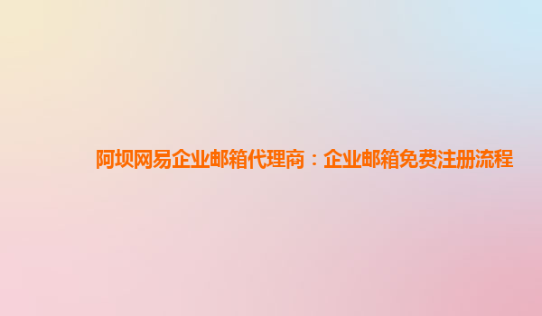 2024-03-08阿坝网易企业邮箱代理商:企业邮箱免费注册流程 作为阿坝地区的网易企业邮箱代理商,我们提供专业的企业邮箱注册服务,为企业用户提供高效便捷的邮箱通讯解决方案。下面将介绍企业邮箱免费注册流程,并分享...
