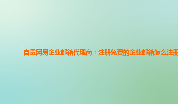 2024-03-08乐山网易企业邮箱代理商:注册免费企业邮箱的方法 作为乐山网易企业邮箱代理商,我们为您提供免费注册企业邮箱的方法,让您能够轻松安全地使用优质的企业邮箱服务。以下是注册步骤: 注册步骤: ...