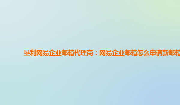 2024-03-08龙口网易企业邮箱代理商:网易企业邮箱怎么申请号 网易企业邮箱是一个专为企业打造的邮箱服务平台,提供了稳定、安全、高效的邮件收发功能,而且操作简单,界面友好。下面介绍一下如何申请网易企业邮箱。 ...