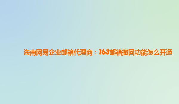 2024-03-08海南网易企业邮箱代理商:163邮箱撤回功能怎么开通 作为一家专业的海南网易企业邮箱代理商,我们了解到很多企业对于邮件撤回功能有需求,今天就来介绍一下如何在163邮箱中开通撤回功能,并结合网易企业邮箱的优势和...