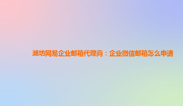 2024-03-08潍坊网易企业邮箱代理商:企业微信邮箱怎么申请 企业微信邮箱是一种专为企业定制的高效沟通工具,能够提供更便捷、更安全的邮件收发服务。在潍坊地区,网易企业邮箱作为知名代理商,为企业用户提供全面的服务支...