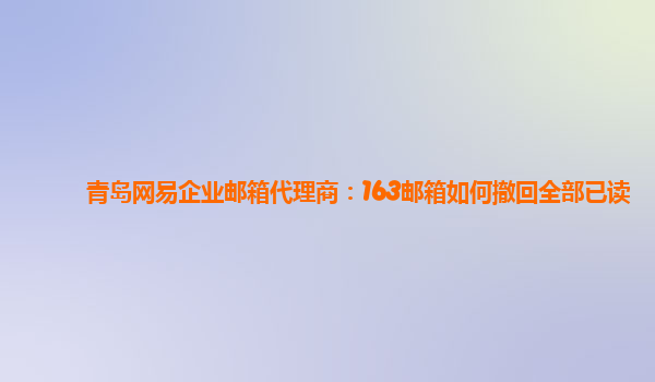 2024-03-08青岛网易企业邮箱代理商:163邮箱如何撤回全部已读 在现代社会,电子邮件已经成为人们工作和生活中必不可少的沟通工具。而网易企业邮箱作为国内一流的企业邮箱服务提供商,其稳定性和安全性备受用户信...