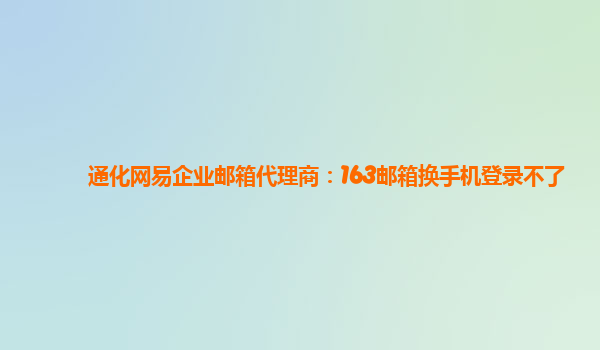 2024-03-08通化网易企业邮箱代理商:163邮箱换手机登录不了 最近,有用户反映在使用163邮箱时遇到了换手机登录不了的问题,这是一个比较常见的情况。在这种情况下,我们可以通过以下方法解决这个问题: 方法一:通过找...