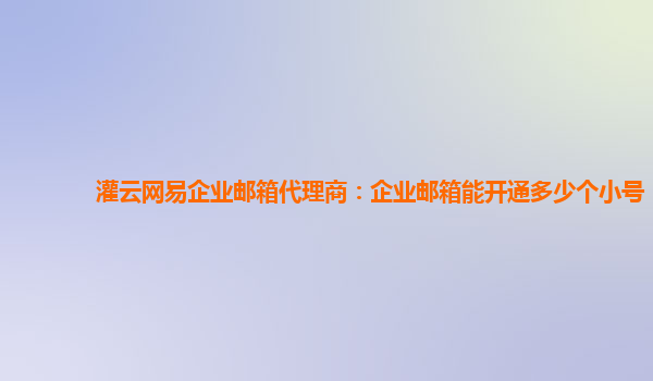 2024-03-08灌云网易企业邮箱代理商:企业邮箱能开通多少个小号 作为灌云地区的网易企业邮箱代理商,我们经常接到关于企业邮箱可以开通多少个小号的问题。今天我们就来为大家解答这个疑惑。 网易企业邮...