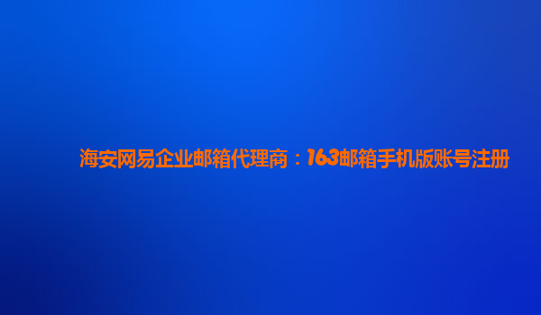 2024-03-08海安网易企业邮箱代理商:163邮箱手机版账号注册 作为海安地区的网易企业邮箱代理商,我们为您提供方便快捷的163邮箱手机版账号注册服务。注册一个网易企业邮箱账号,能够让您更加高效地进行邮件沟通和管理工作。 ...