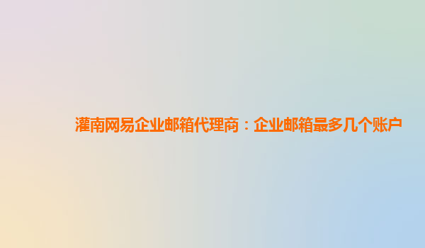 2024-03-08灌南网易企业邮箱代理商:企业邮箱最多几个账户 作为灌南地区的网易企业邮箱代理商,我们经常接到一些关于企业邮箱的疑问,其中包括一个常见的问题:企业邮箱最多可以添加多少个账户? 在网易企业邮箱中,每个企业...