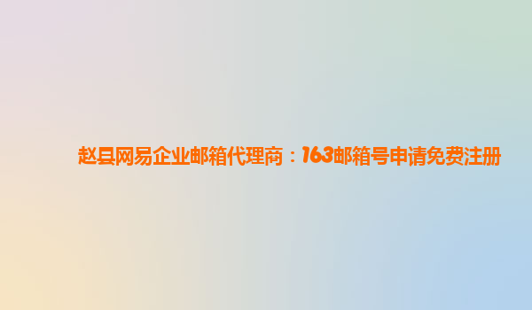2024-03-03赵县网易企业邮箱代理商:163邮箱号申请免费注册 网易企业邮箱是一款功能强大、稳定可靠的企业邮箱服务,受到了广大企业和个人用户的青睐。作为赵县地区的网易企业邮箱代理商,我们为您提供免费注册服务,帮助您轻松...