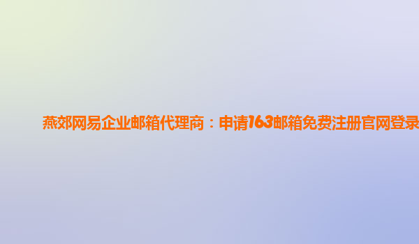 燕郊网易企业邮箱代理商:申请163邮箱免费注册官网登录 网易企业邮箱优势 网易企业邮箱是国内知名的企业邮箱服务商,提供稳定、安全、高效的企业邮箱解决方案。其优势在于: 稳定性高:采用先进的技术和设备保...