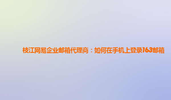 2024-03-03枝江网易企业邮箱代理商:如何在手机上登录163邮箱 网易企业邮箱的优势 作为国内领先的企业邮箱服务提供商,网易企业邮箱拥有众多优势,包括高效稳定的邮箱系统、强大的防护功能、灵活智能的管理工具等。同...