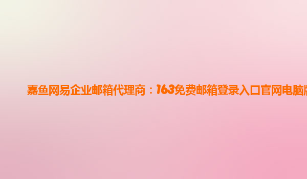 2024-03-03网易企业邮箱代理商:163免费邮箱登录入口官网电脑版 作为一家知名的企业邮箱服务提供商,网易企业邮箱在市场上拥有众多的用户和代理商。其中,嘉鱼网是网易企业邮箱的授权代理商之一,为用户提供高品质的企业邮箱...