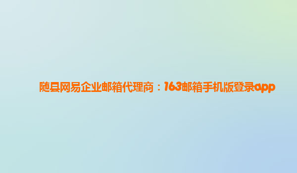 2024-03-03随县网易企业邮箱代理商:163邮箱手机版登录app 作为随县的网易企业邮箱代理商,我们很荣幸能为您提供优质的企业邮箱服务。在现代社会中,邮箱已经成为人们工作和生活中必不可少的通讯工具之一。而网易企业邮箱作为...