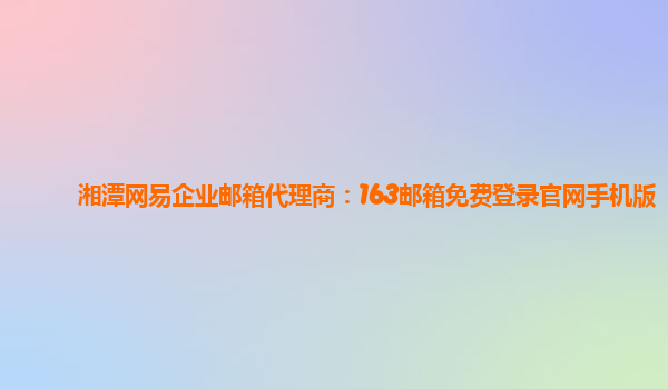 湘潭网易企业邮箱代理商:163邮箱免费登录官网手机版 随着互联网的飞速发展,企业邮箱在商务交流中变得愈发重要。作为一家企业,选择一个稳定可靠的邮箱服务商至关重要。作为湘潭地区的网易企业邮箱代理商,我...
