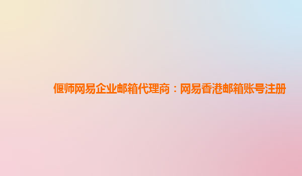 2024-03-03滑县网易企业邮箱代理商:网易香港邮箱怎么注册 网易企业邮箱是一款功能强大、稳定可靠的企业级邮箱服务,为企业提供了高效的沟通与协作平台。作为滑县的网易企业邮箱代理商,我们经常收到关于网易香港邮箱的注...