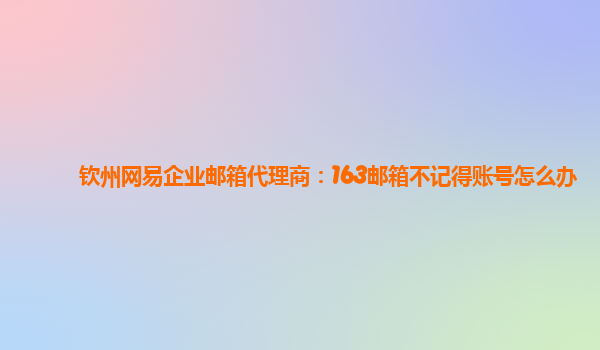 2024-03-02钦州网易企业邮箱代理商:163邮箱不记得账号怎么办 背景: 现在越来越多的人使用网易企业邮箱,它是一种功能齐全、稳定可靠的企业级邮箱服务。但是,有时候我们会遇到这样的问题:我们忘记了163邮箱的账号,这该怎...