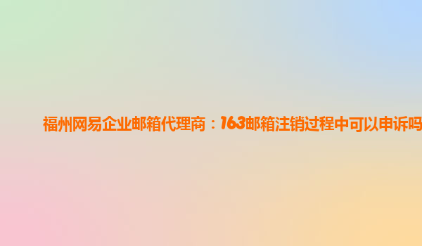 2024-03-02福州网易企业邮箱代理商:163邮箱注销过程中可以申诉吗 网易企业邮箱作为国内知名的企业邮箱服务商之一,以其稳定、安全、高效的特点受到了广大用户的喜爱。使用网易企业邮箱不仅能够提升企业形象,还...