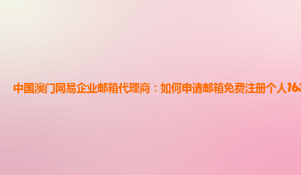 2024-03-02中国澳门网易企业邮箱代理商:如何申请邮箱免费注册个人163邮箱 网易企业邮箱代理商是澳门地区的一家专业的企业邮箱服务提供商,为企业和个人用户提供稳定、安全的企业邮箱解决方案。在使用网易企业邮箱的过程中,...