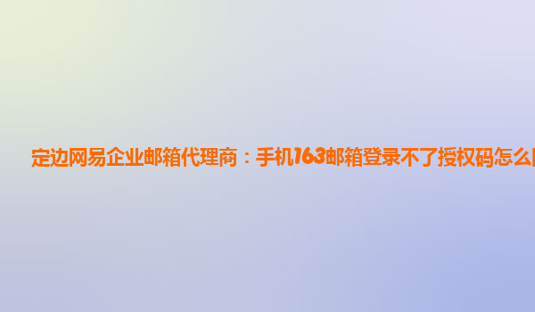 2024-03-01网易企业邮箱:手机163邮箱登录不了授权码怎么回事 网易企业邮箱作为国内知名的企业邮箱服务商,提供了稳定可靠的企业邮箱解决方案,受到了广大企业用户的青睐。在使用过程中,有时会遇到一些问题,比如手机163邮箱...