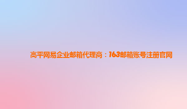 2024-03-01高平网易企业邮箱代理商:163邮箱账号注册官网 作为国内知名的企业邮箱服务提供商,网易企业邮箱在市场上拥有良好的口碑和稳定的用户基础。作为高平网易企业邮箱代理商,我们为客户提供注册、配置、维护等各项服务...