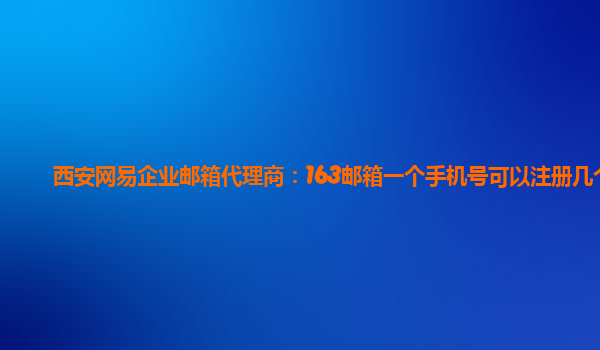 2024-03-01西安网易企业邮箱代理商:163邮箱一个手机号可以注册几个 作为西安地区的网易企业邮箱代理商,我们经常接到关于一个手机号能注册几个163邮箱账号的咨询。今天我们就来为大家解答这个问题,并结合网易...