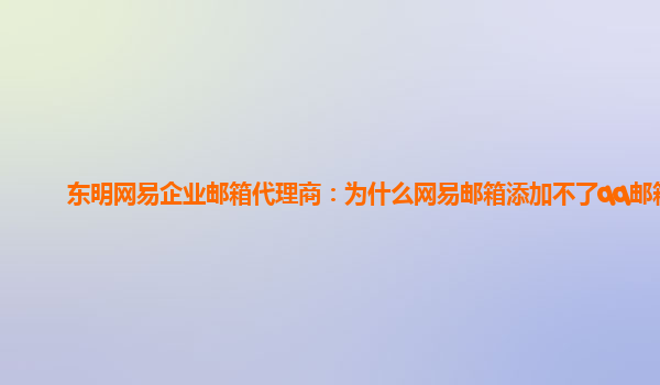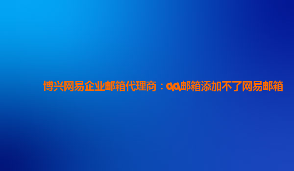 2024-03-01博兴网易企业邮箱代理商:qq邮箱添加不了网易邮箱 作为博兴地区的网易企业邮箱代理商,我们经常遇到一些用户反馈说他们无法通过qq邮箱添加网易企业邮箱,这可能是由于两个不同邮箱系统之间的兼容性问题导致的。但是...