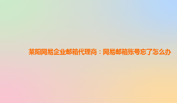 莱阳网易企业邮箱代理商:网易邮箱账号忘了怎么办 作为莱阳地区的网易企业邮箱代理商,我们深知在日常工作中使用企业邮箱的重要性。然而,随着工作节奏的加快,有时候我们可能会忘记自己的企业邮箱账号。当你遇到这...