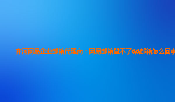 2024-03-01齐河网易企业邮箱代理商:网易邮箱登不了qq邮箱怎么回事儿 在日常工作和生活中,我们经常会使用到邮箱来发送和接收邮件。而作为一款常用的企业邮箱服务商之一,网易企业邮箱备受大家青睐。但有时候我们可能会遇到一...