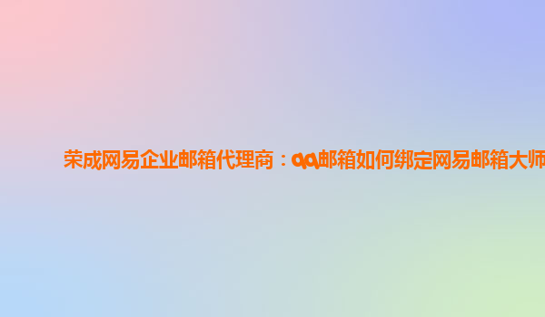 2024-03-01荣成网易企业邮箱代理商:qq邮箱如何绑定网易邮箱大师 作为一家专业的荣成网易企业邮箱代理商,我们深知企业在日常办公中对邮箱的重要性。为了提供更好的服务和体验,我们推荐使用网易邮箱大师来管理企业邮箱。...