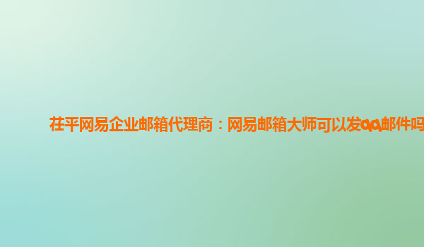 2024-03-01招远网易企业邮箱代理商:网易邮箱大师可以发邮件给qq邮箱吗 网易企业邮箱是一款专为企业量身定制的高效、稳定、安全的企业邮箱服务。作为招远网易企业邮箱代理商,我们经常被客户询问一个问题:网易邮箱大师可以发...