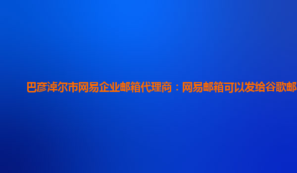 2024-03-01巴彦淖尔市网易企业邮箱代理商:网易邮箱可以发给谷歌邮箱吗 随着互联网的发展,企业邮箱已经成为企业管理和沟通的重要工具之一。在众多企业邮箱中,网易企业邮箱以其稳定的服务质量和丰富的功能备受青睐。而在巴彦...