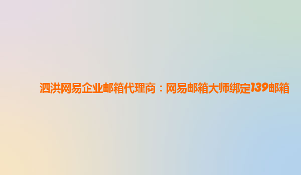 2024-02-29网易企业邮箱代理商:网易邮箱大师绑定139邮箱 作为一家专业的泗洪网易企业邮箱代理商,我们为您提供最优质的服务。今天我们将重点介绍网易邮箱大师与139邮箱的绑定,让您享受更便捷的企业邮箱管理体验。 网易企业...