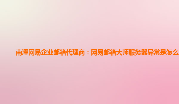 南漳网易企业邮箱代理商:网易邮箱大师服务器异常是怎么回事 最近,很多使用网易企业邮箱的用户都反映网易邮箱大师服务器出现了异常,导致无法正常使用该服务。那么,这个问题到底是怎么回事呢?我们来探讨一下。 ...