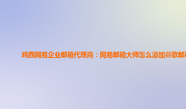 鸡西网易企业邮箱代理商:网易邮箱大师怎么添加谷歌邮箱 作为鸡西地区的网易企业邮箱的代理商,我们深知企业邮箱的重要性和使用优势。在这篇文章中,我们将会介绍如何在网易邮箱大师中添加谷歌邮箱,并分享一些使用...