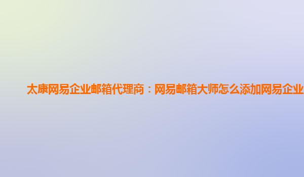 2024-02-28浚县网易企业邮箱代理商:网易邮箱大师添加企业邮箱怎么添加 为了更好地管理邮箱,提高工作效率,越来越多的企业开始使用企业邮箱。而网易企业邮箱作为国内一流的企业邮箱服务商之一,其稳定、安全、易用的特点备受...