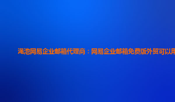 2024-02-28渑池网易企业邮箱代理商:网易企业邮箱免费版外贸可以用吗 网易企业邮箱优势 作为国内知名的企业邮箱服务提供商,网易企业邮箱具有以下优势: 稳定可靠:采用分布式架构,全网无死角监控,保证99.9%的稳定性...